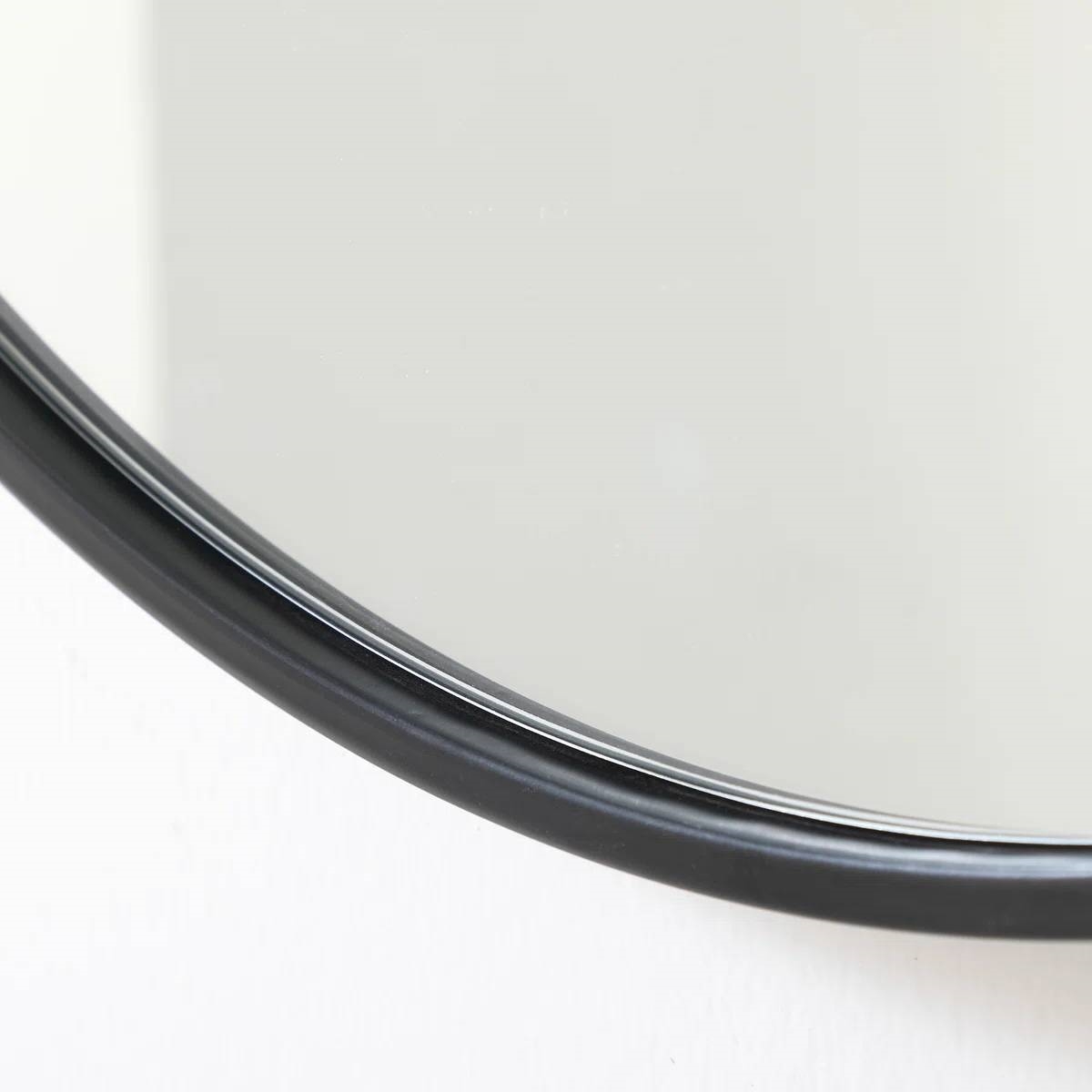 Elevate your home décor with this Round 28-inch Wall Mirror in Black - Living Room Bedroom Accent Bathroom Mirror. The ultra-thin circular iron frame encases a recessed glass surface, offering a sleek, effortless look that complements modern and transitional aesthetics. Ideal for bedrooms, bathrooms, or entryways, this mirror reflects natural light to make your space larger as well as a place to check your look before you head out the door. Bonus: There's a bracket welded onto the back of the mirror for hassle-free hanging. Available in several sizes and finishes.